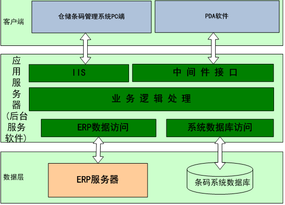 客户端层由产品追溯及系统管理网站、电子看板软件、PDA软件、迷你电脑终端软件构成,该层次面对最终用户,界面根据用户需要进行定制,并且在操作上尽可能简便;通过中间件与后台系统进行交互。